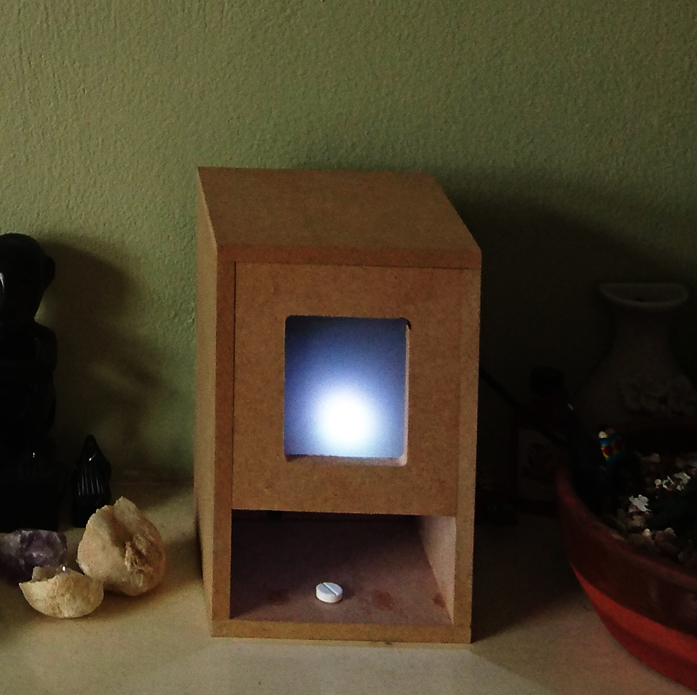 Capsule, a conceptual pill dispensary for the elderly that signals when it’s time to take medication and collects data on the time the medication is taken medication. The dispense time and dose of each type of medication can be controlled by the prescribing doctor via internet.
